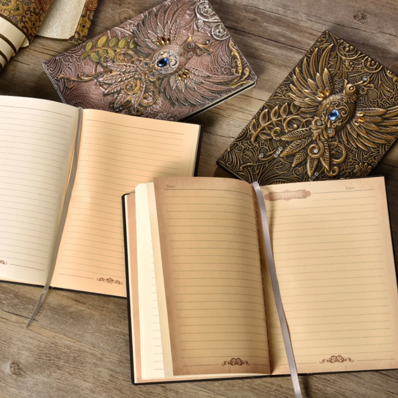 featureVintage three-dimensional carved cover notebook