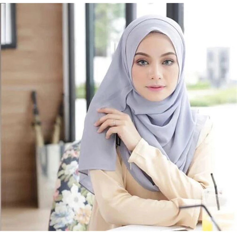 70*170CM Chiffon Hijab Wrap Scarf Solid Color Women Muslim Double Loop Instant Turban Islamic Shawls Abaya Turkish Headscarf