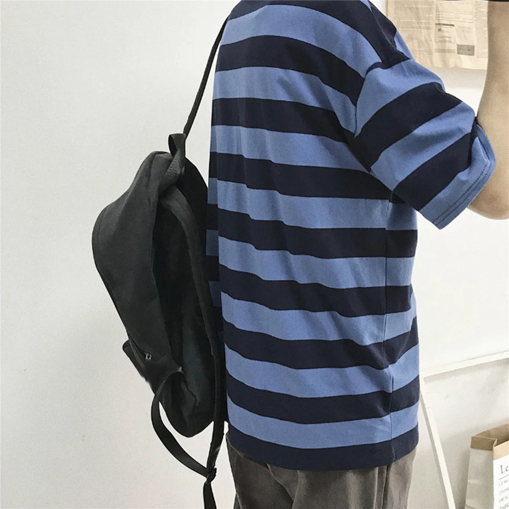 Футболка мужская хлопковая с коротким рукавом, Стильная майка в горизонтальную полоску, с круглым вырезом, топ на лето