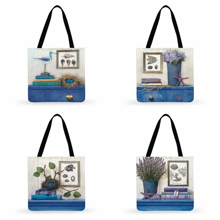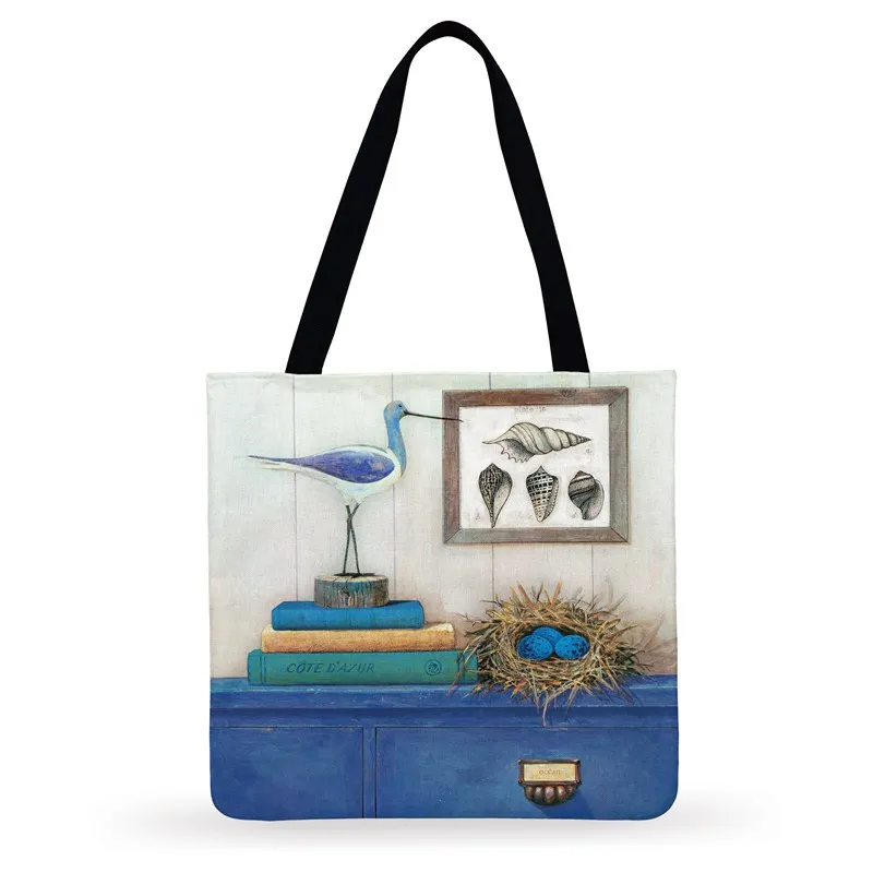 Сумка-тоут женская, с принтом в виде рыб и птиц, складная