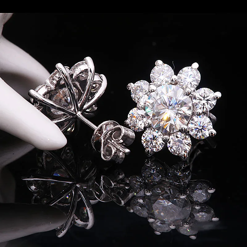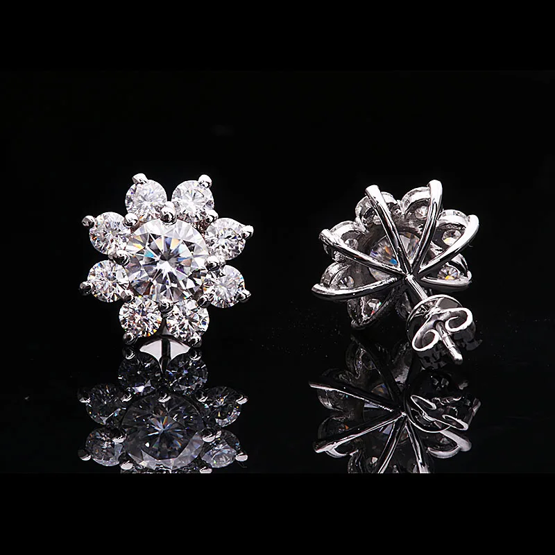 1.0ctw 5,0 мм круглая отличная огранка DF цвет VVS1 серьга с муассанитом цветок Настоящее 18 к белое золото пуш-ап