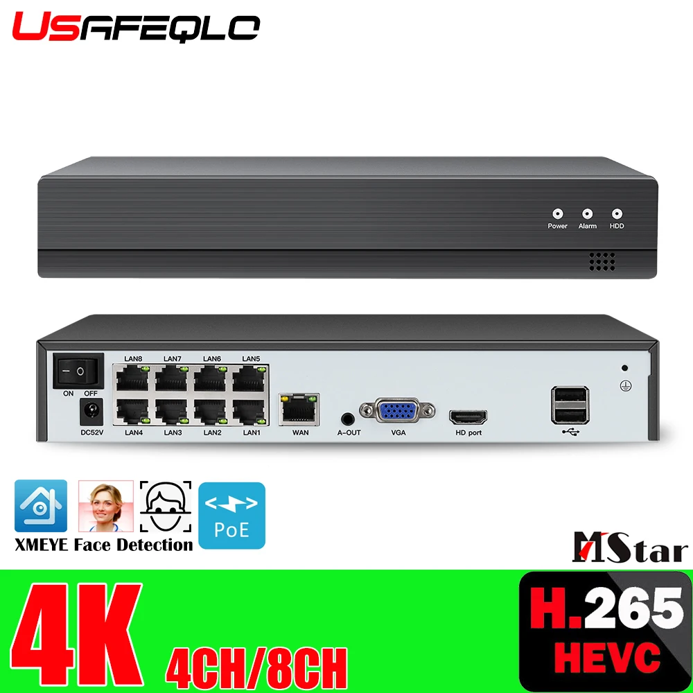 Сетевой видеорегистратор H.265, устройство обнаружения лиц, 8 каналов * 4K, 4 канала8 каналов, PoE, для IP-камер HD, 8 Мп, 5 Мп