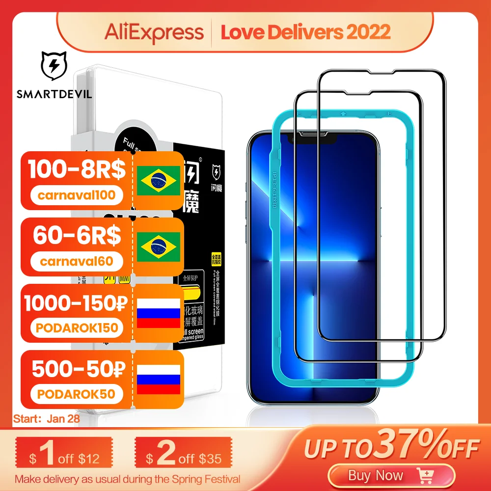 Защитное стекло SmartDevil для iPhone 11, 13 Pro Max, 9H, mini12 Pro Max, XR, Xs Max, 1212 mini, полное покрытие
