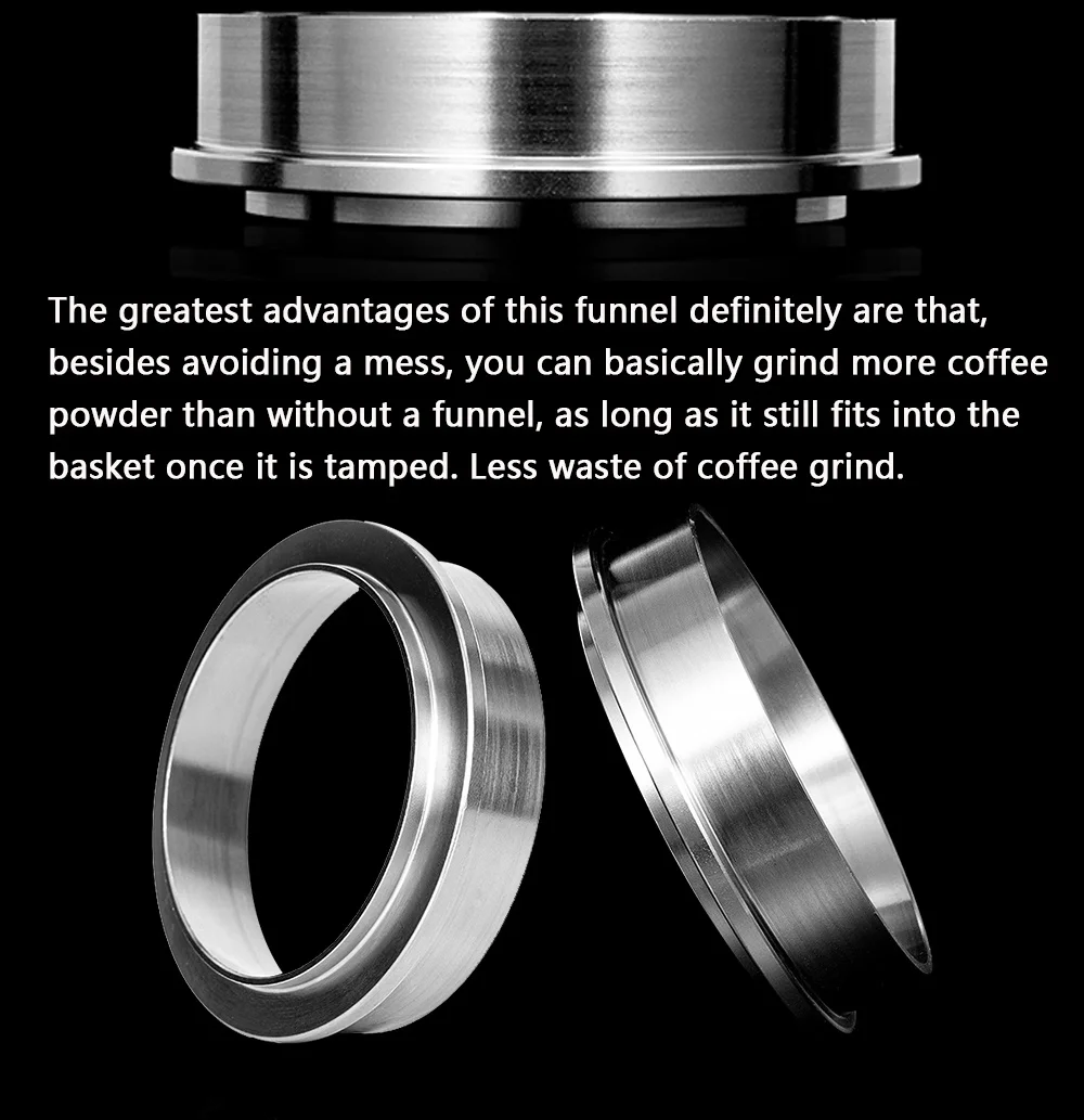 Наибольшие преимущества этой воронки, безусловно, заключаются в том, что, кроме того, чтобы избежать беспорядка, вы можете в основном Измельчить больше кофейного порошка, чем без воронки, до тех пор, пока он все еще помещается в корзину, как только он будет обработан. Меньше отходов кофе молоть.