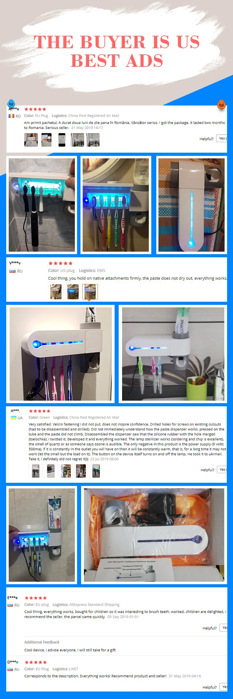 Поддержка дропшиппинг 2в1 УФ-светильник ультрафиолетовая зубная щетка автоматический дозатор зубной пасты стерилизатор держатель зубной щетки очиститель