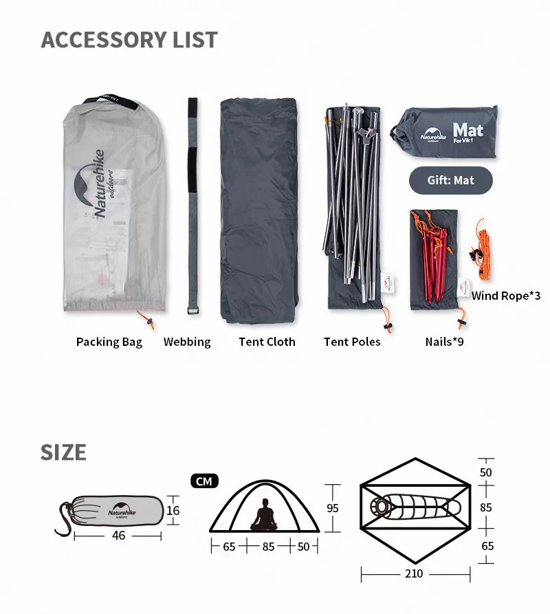 Naturehike VIK Series ультра светильник, одиночный тент 15D внешняя непромокаемая кемпинговая палатка с бесплатным наземным листом NH18W001-K
