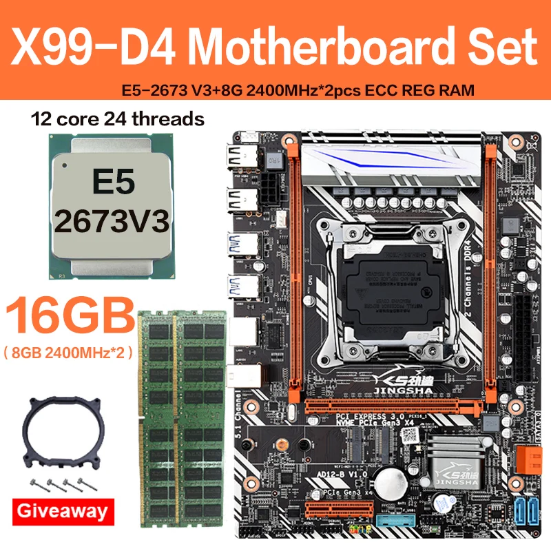 JINGSHA X99 D4 Placa base con Xeon E5 2673V3 LGA2011-3 CPU 2 шт. * 8 ГБ 2400 МГц DDR4 ECC REG de memoria