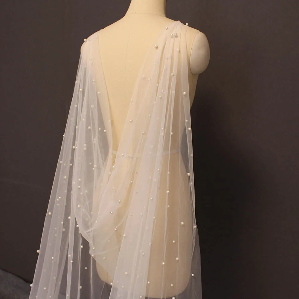 Свадебные накидки с жемчугом, длина 3 метра, Белыйцвет слоновой кости, болеро для невесты, свадебные аксессуары