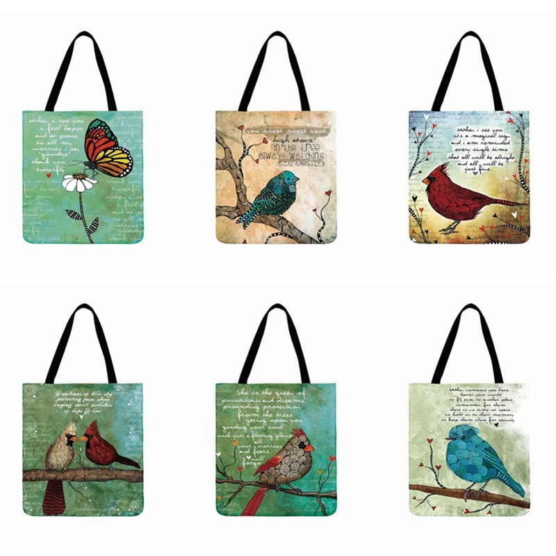 Сумка-тоут женская, с принтом в виде птиц, складная