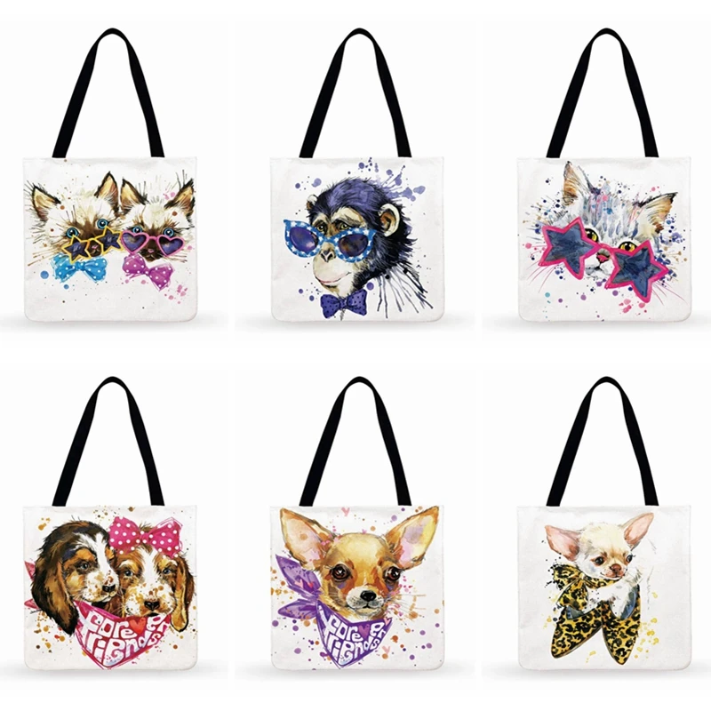 Сумка-тоут женская с акварельным принтом, милая Повседневная Складная Сумочка-тоут на плечо, пляжный саквояж для покупок, шоппер