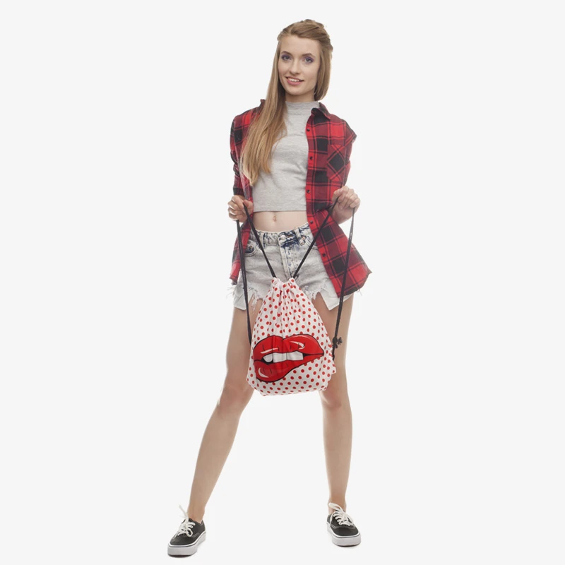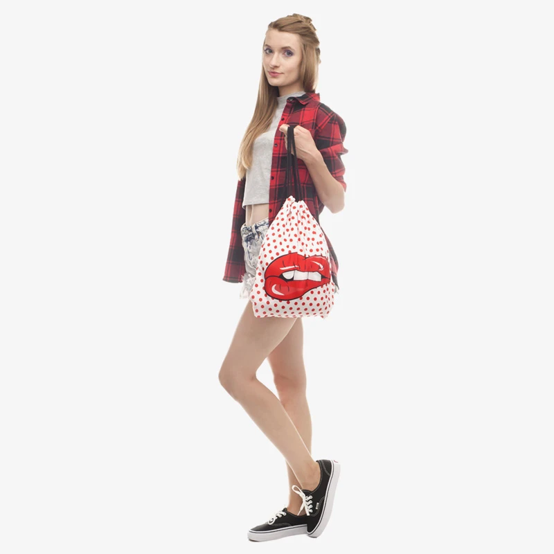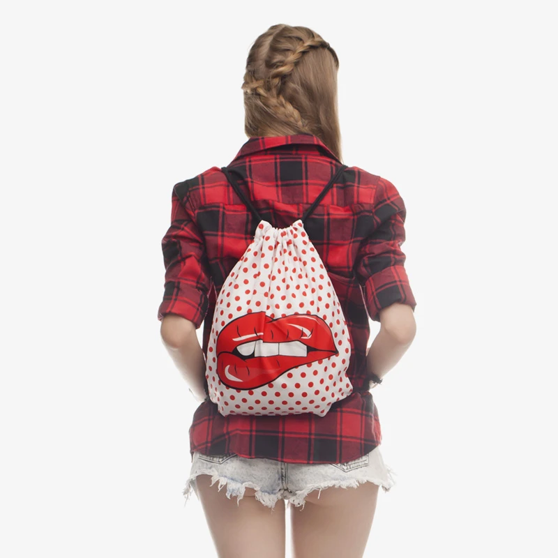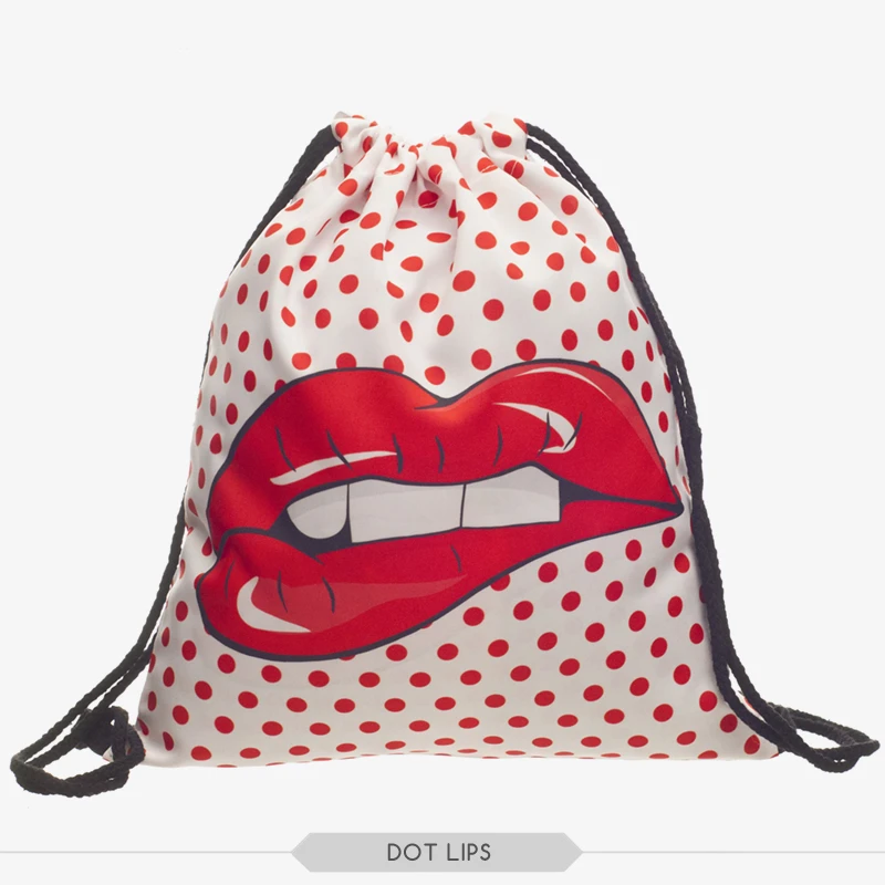 Новый 3D мешок с кулиской с принтом в горошек и красных губ модные Mochila Cuerda Harajuku рюкзак на шнурке для женщин мужчин Modis веревочной сумкой для девочек