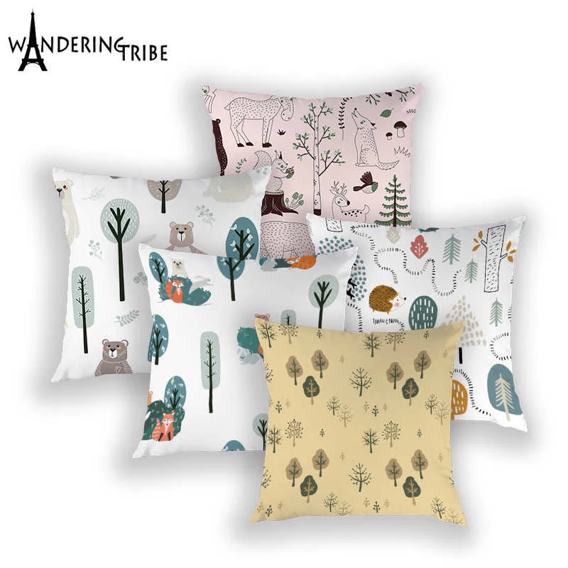 Чехол для подушки с рисунком лисы в скандинавском стиле, чехол для подушки с изображением полярного медведя, домашний декор, диванные подушки, чехлы для подушки чехол s Cojin
