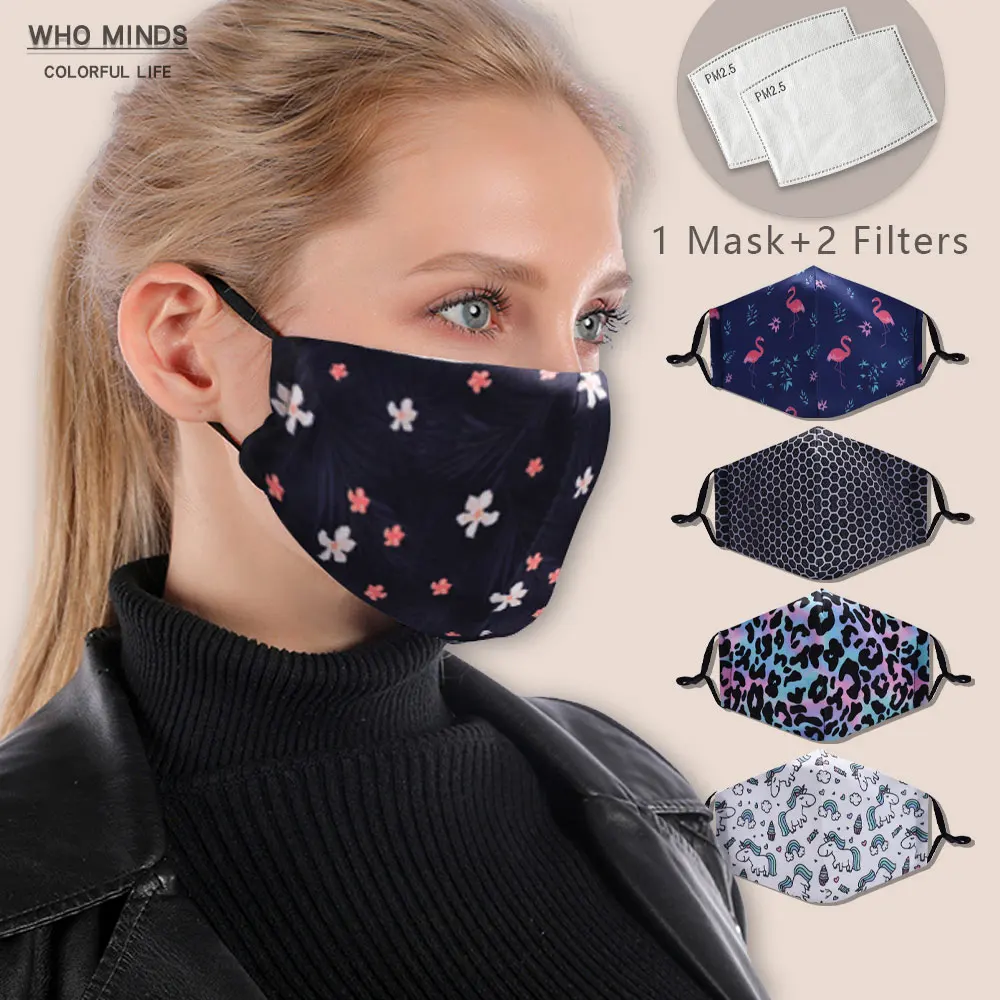 Многоразовая маска для лица с цветами, смываемая маска для лица с фильтром, регулируемыми бретелями, Ветрозащитная маска от гриппа