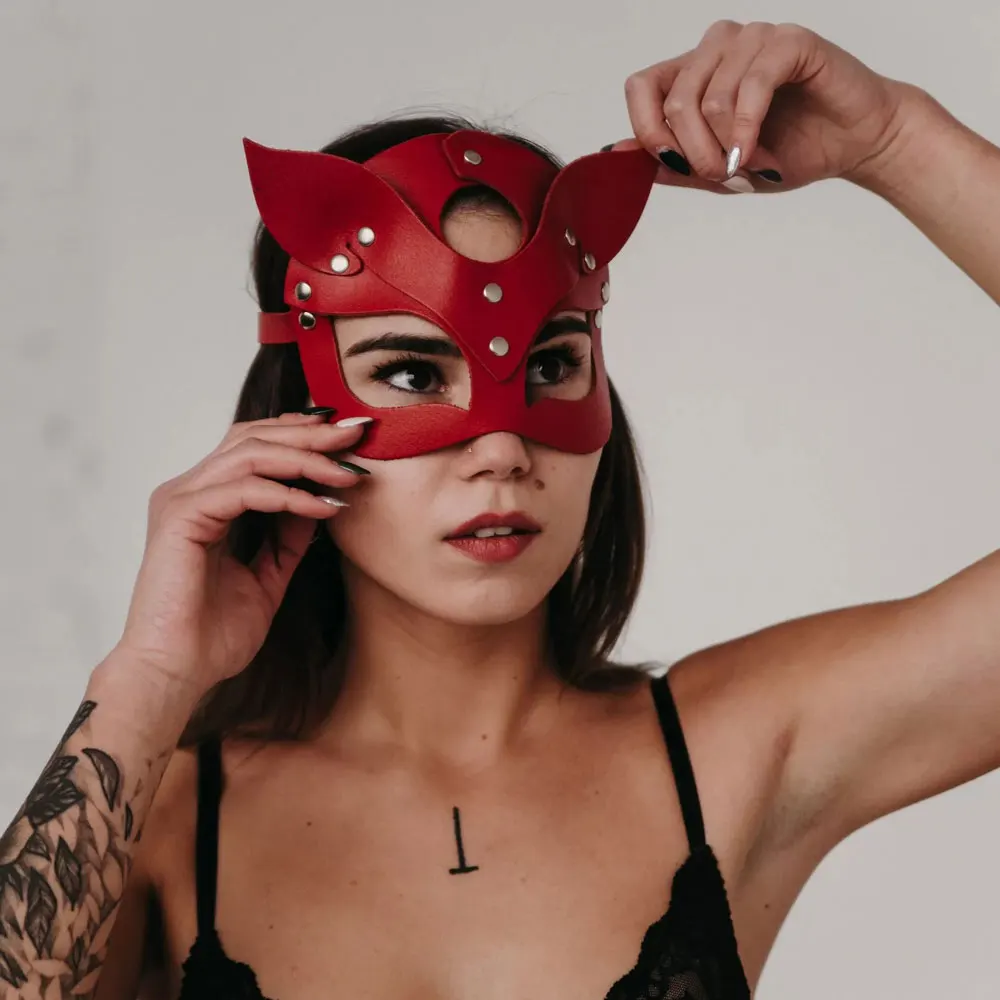Маска-портупея для косплея полуглаз, кожаная маска-портупея для кошек, маска для косплея, женская кожаная Веселая маска кошки, черная маска для Хэллоуина