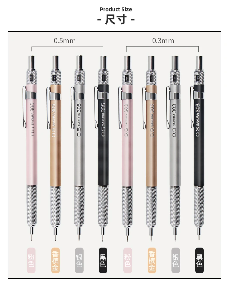 Автоматический карандаш SAKURA, 1 шт., 0,3 мм0,5 мм, металлический материал, низкий центр тяжести, фотоэскиз, ручная работа, карандаш для комиксов