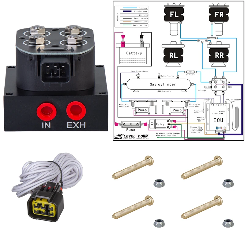 Автомобильныймотоциклетный пневматический контроллер Подвески 12 В Соленоидный клапан набор коллектора 4-угольный (0-300 фунтов на кв. дюйм)