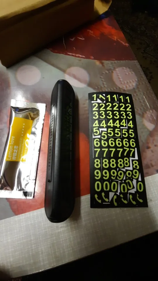 Товар хороший. Цифры немного разбежались по упаковке, но вроде всё на месте. В комплекте 1 пахучка (жадины, могли и пару положить :)). Цифры светятся. Доставка быстрая (до КЗ чуть больше 2-х недель). Всё хорошо. Рекомендую