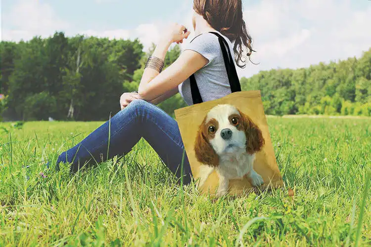 Женская сумка-тоут, милый щенок, живопись с котенком, принт, Женская Повседневная Сумка-тоут, женская сумка на плечо, складная сумка для покупок, пляжные сумки для улицы