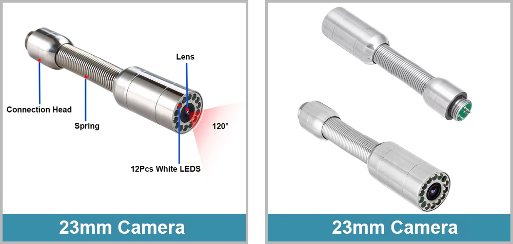 Эндоскоп для промышленной трубы из нержавеющей стали, 23 мм, водонепроницаемая Головка камеры, IP 68 HD 1000 TVL, используется для осмотра труб