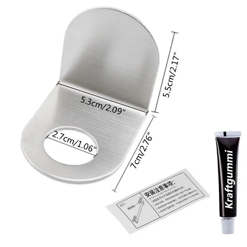 Features:With self-adhesive design, you can install it without tools, easy and quickly.Made of high quality of stainless steel with high hardness.Widely used in bathroom and kitchen, you could use it nearly by the bathtub or washbasin or anywhere you want.The holder very greatly save your space with those bottles.This holder design with 2 kinds of hole size, one for 33mm, one for 27mm which would fit all your needs.Shampoo Hook only, other accessories demo in the picture is not included.Specification:Material: 304 Stainless SteelDimensions: app.7x5.3x5.5cm/2.76x2.09x2.17inS Hole Diameter: app.2.7cm/1.06inL Hole Diameter: app.3.3cm/1.30inColor: SilverQuantity: 1 SetNote:No retail package.Please allow 0-1cm error due to manual measurement. pls make sure you do not mind before you bid.Due to the difference between different monitors, the picture may not reflect the actual color of the item. Thank you!Package includes:1 Set x Shampoo Hook