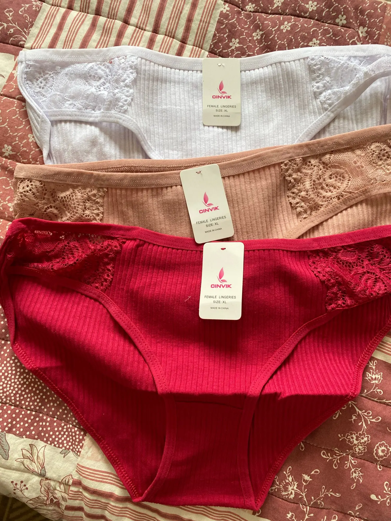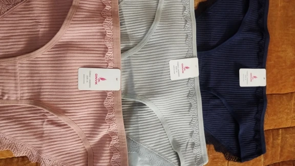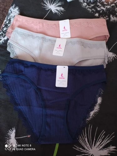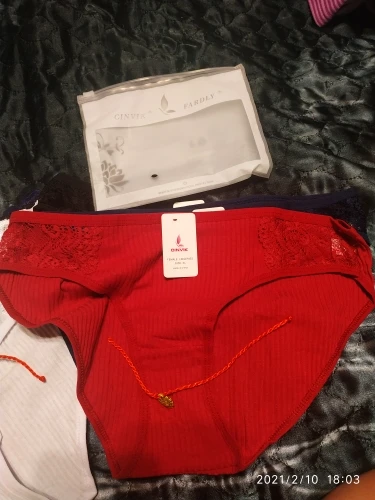 Трусики выглядят не плохо, ткань очень тоненькая , не знаю как после стирки, серые чуть шире других, по размеру все подошло, если бы заказала меньше размер то не влезла бы. А так можно даже побольше брать, эти L в облипку но я так и хотела, на об 94 пояс 99-100 попа. Рюшечка на попе выглядит очень симпатично. Спасибо, если после стирки все будет отлично закажу ещё Доставка шла где то полтора месяца, возможно из-за Китайских праздников