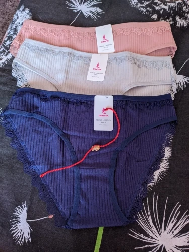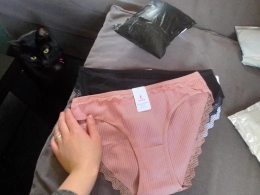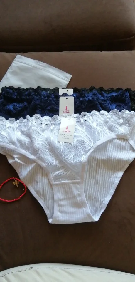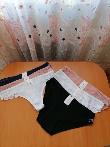 Заказ пришел очень быстро. Хлопок. Очень симпатичные трусики, но с размером не угадала. Заказала L (на вес 50-60 кг.), у меня 59 кг. Оказались, маловаты. Продавца - рекомендую.