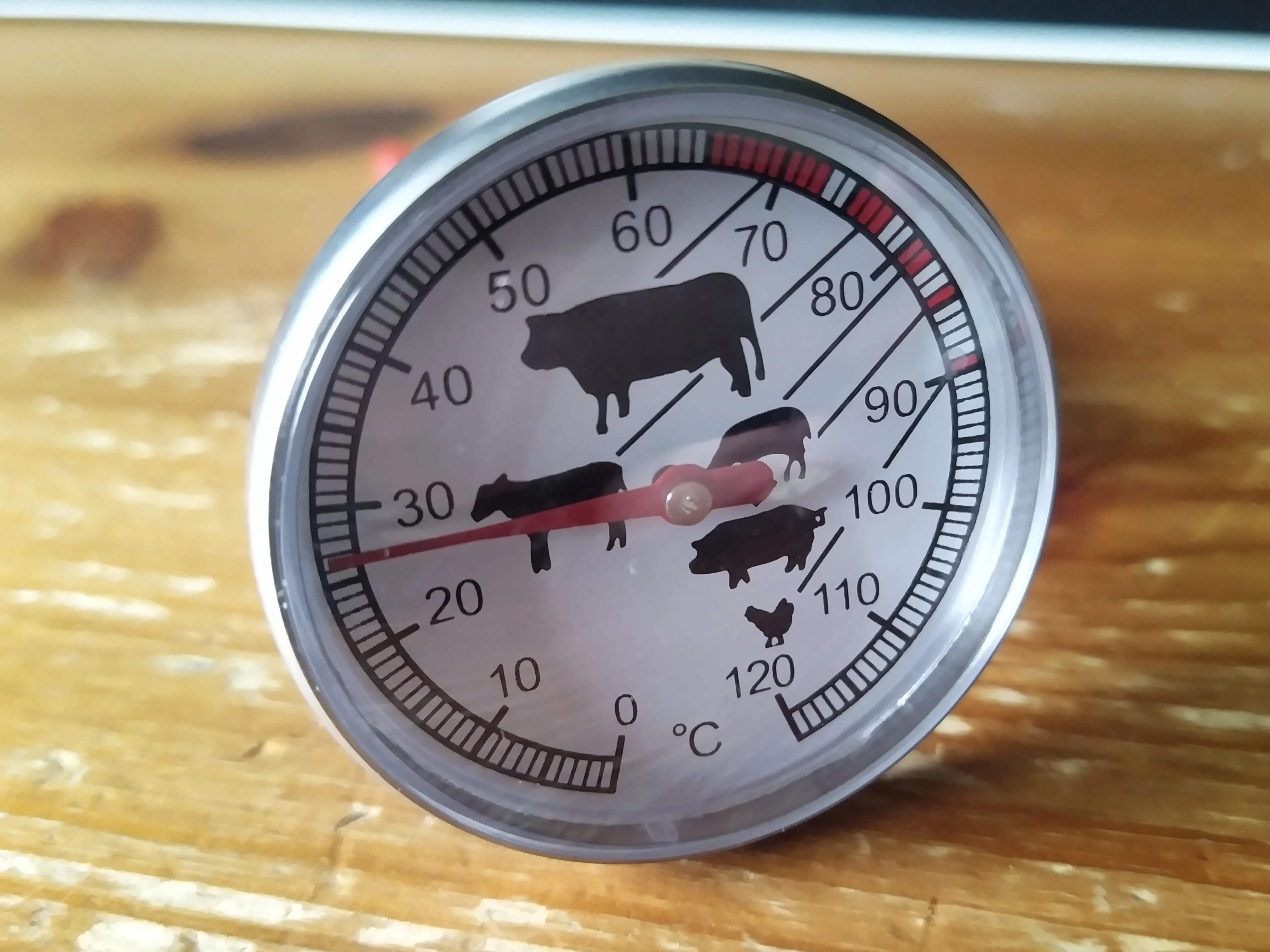 быстрая доставка! продавец общается! товар отличный! цифры на шкале крупные, показания читаются легко! прибор показывает точно, только держатель надо устанавливать максимально вверх, к прибору, как на картинке! погрешность, регулируется гайкой! продавца и термощуп рекомендую!