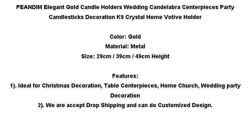 Элегантные золотые подсвечники PEANDIM, СВАДЕБНЫЕ КАНДЕЛЯБРЫ, центральные украшения для вечерние, декоративные хрустальные подсвечники K9 для дома