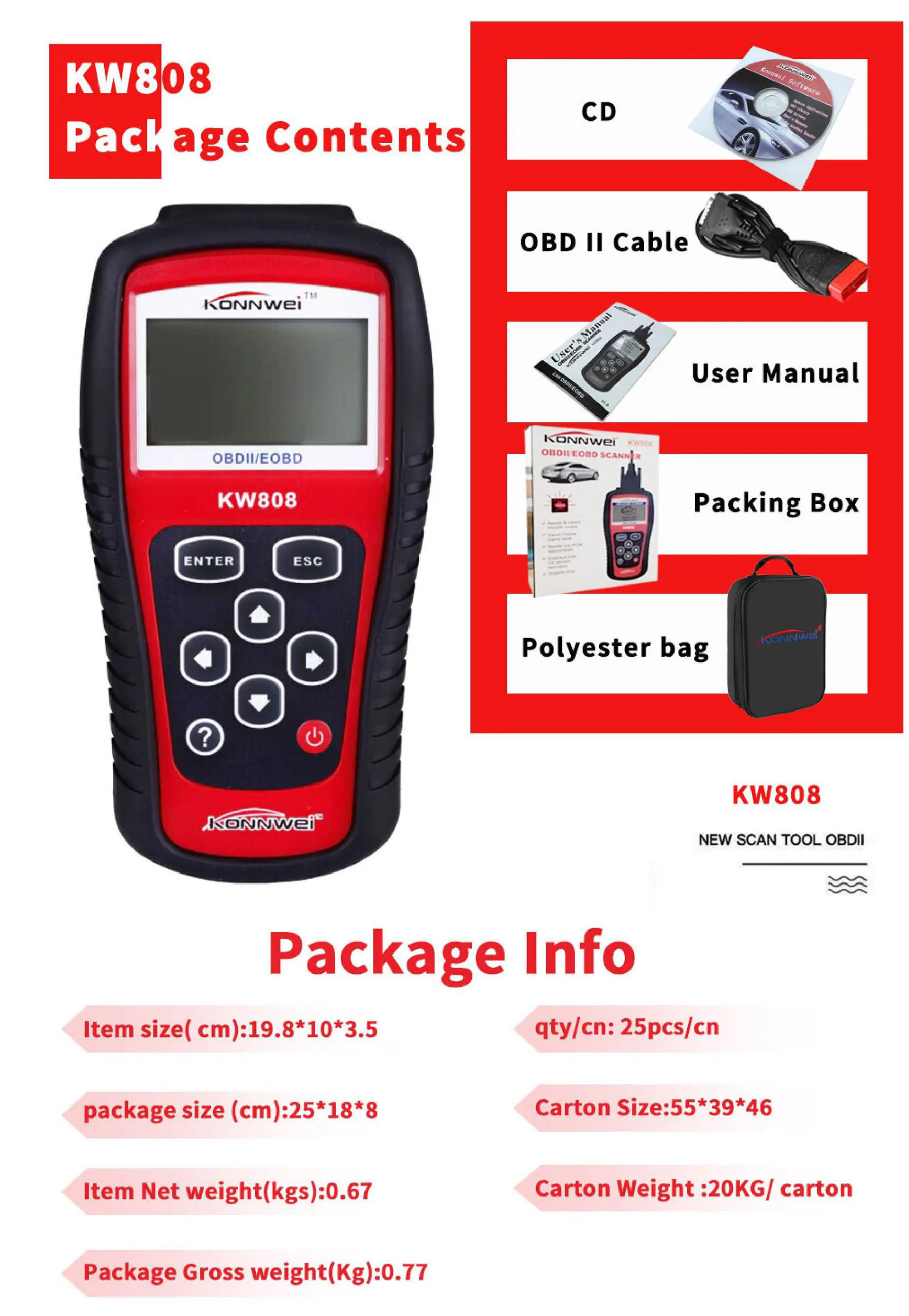 Автомобильный сканер автомобильный диагностический, KW808, OBD 2