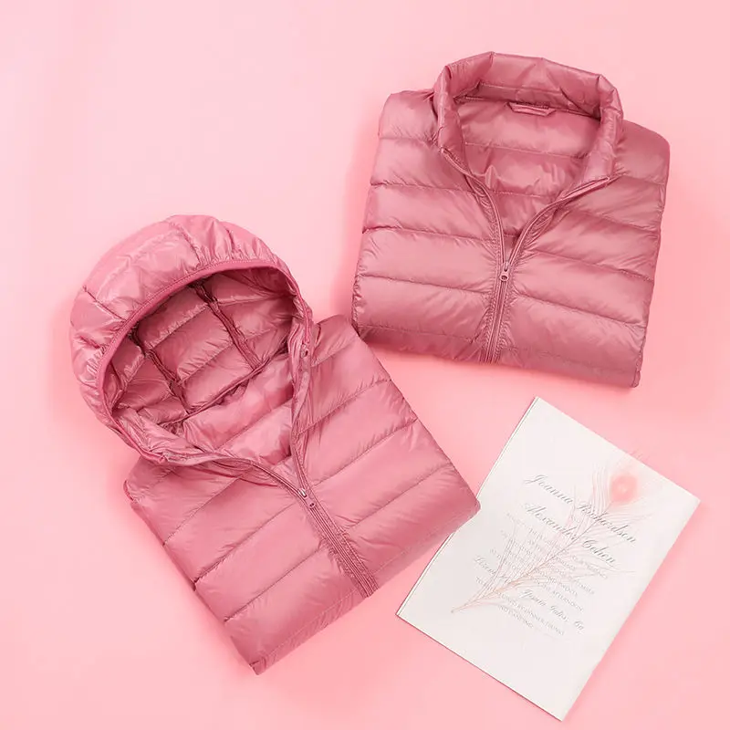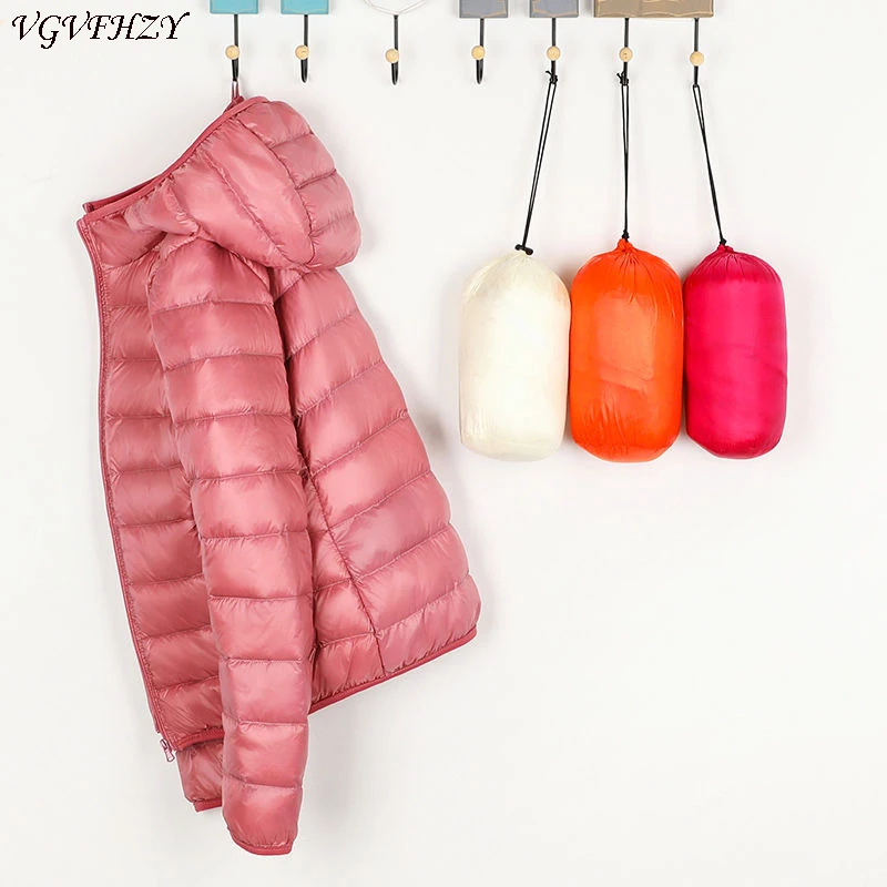 Куртка женская Ультралегкая на утином пуху, тонкий пуховик с капюшоном, теплая парка с длинным рукавом, портативная верхняя одежда, 2020