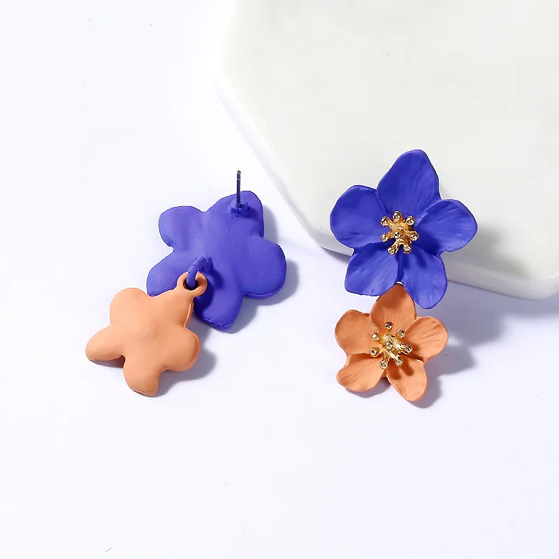 Женские серьги с большим двойным цветком, летние вечерние сережки смешанного цвета для свадьбы, 2020, модные ювелирные украшения