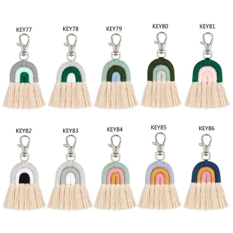Плетеные радужные Брелки для женщин, брелок ручной работы в стиле бохо, брелок макраме, сумка, Очаровательное украшение для автомобиля, подарки