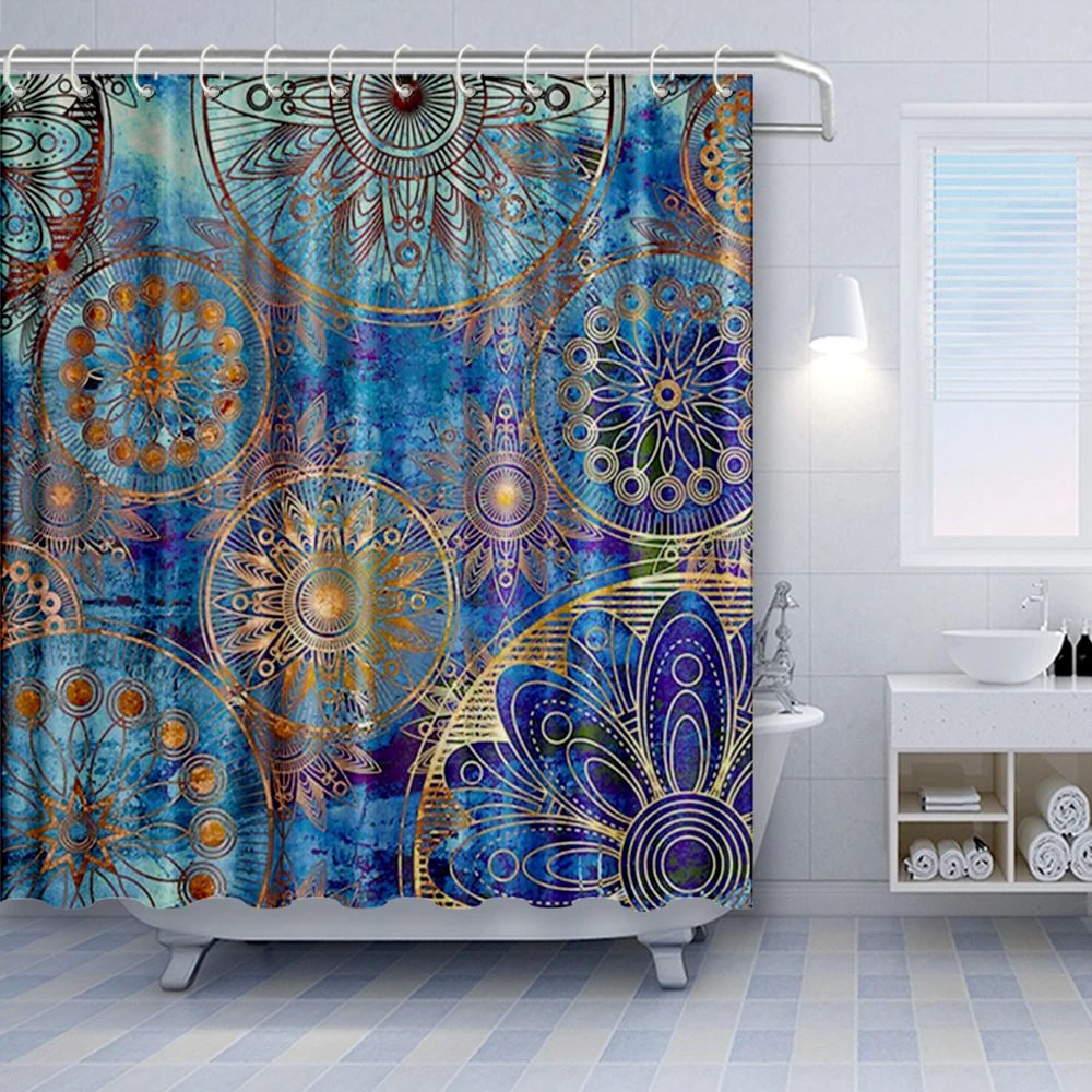 Сине-фиолетовая занавеска для душа с мандалой, дерево жизни с цветочным стилем, мандала, Религиозное искусство, медитация, мир, спа, декор для ванной комнаты