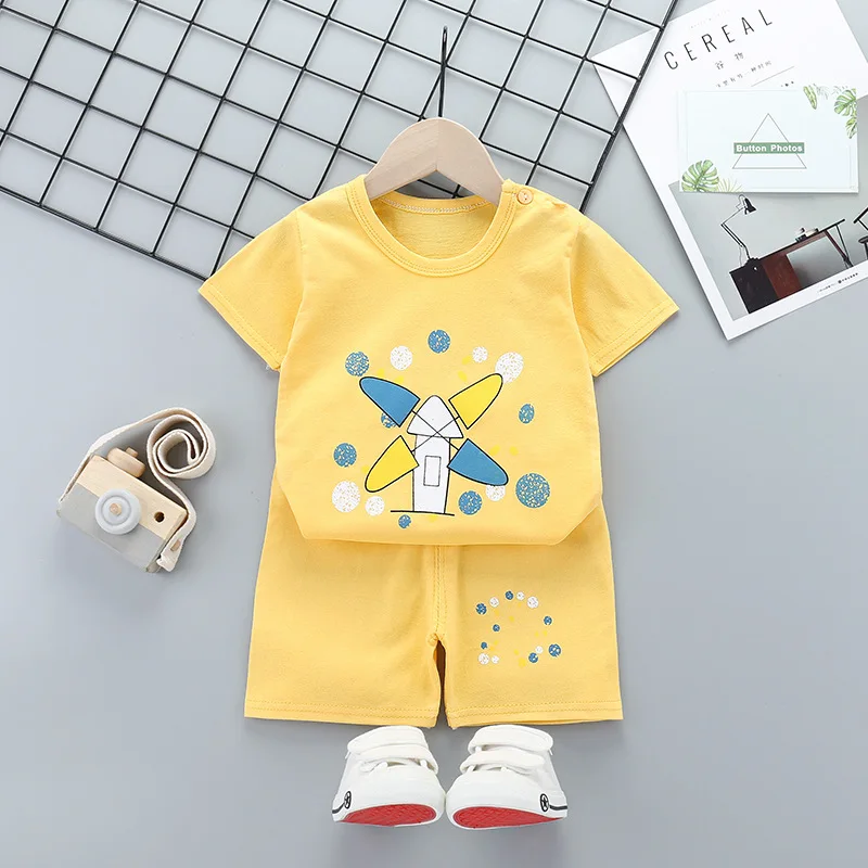 Комплект одежды для маленьких мальчиков и девочек, летний повседневный комплект из 2 предметов, топ с коротким рукавом и штаны, 2020
