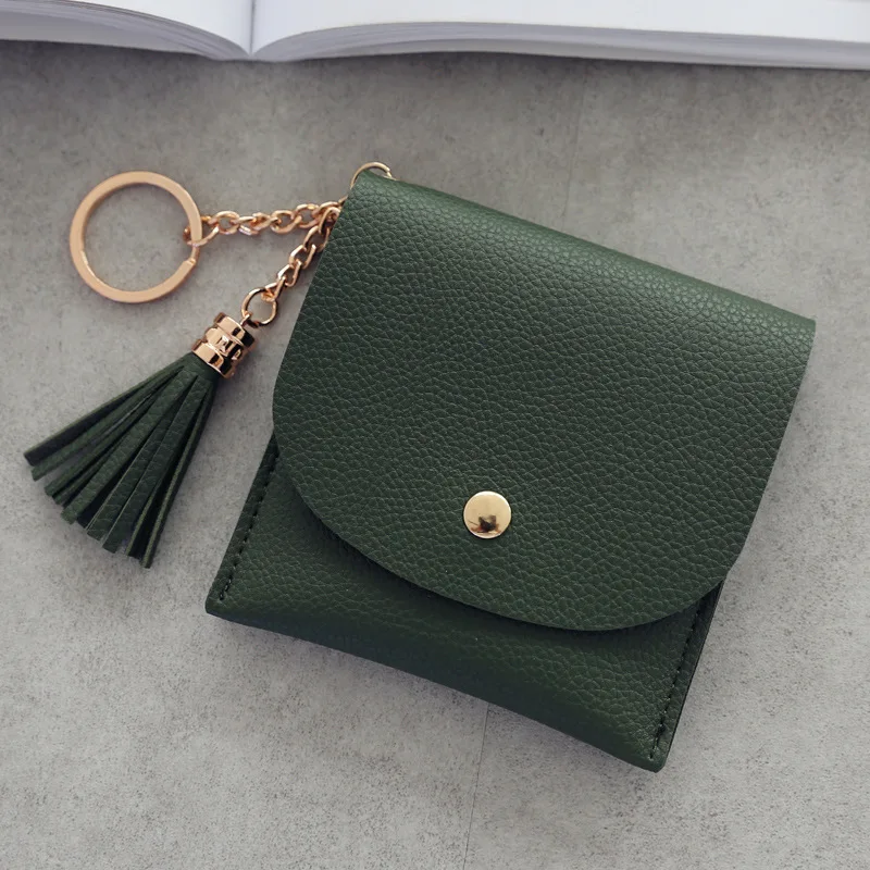 Женские кошельки, Женский кошелек из искусственной кожи, с кисточками и металлическим кольцом, клатч, брелок, тонкая сумка для ключей, держатель для карт, мини-сумка