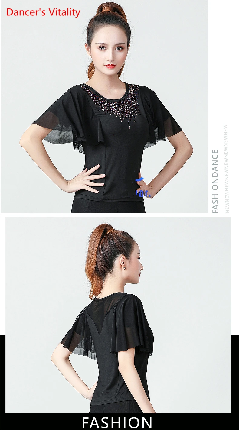 Одежда для латинских танцев, женский сексуальный топ для взрослых, круглый вырез, новинка, одежда для бальных танцев, профессиональная одежда для выступлений
