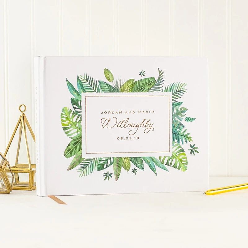 Персонализированная тропическая ветровая Свадебная Гостевая книга, альтернатива, книга для гостей Greency, белый альбом для гостей, свадебные подарки с именами на заказ