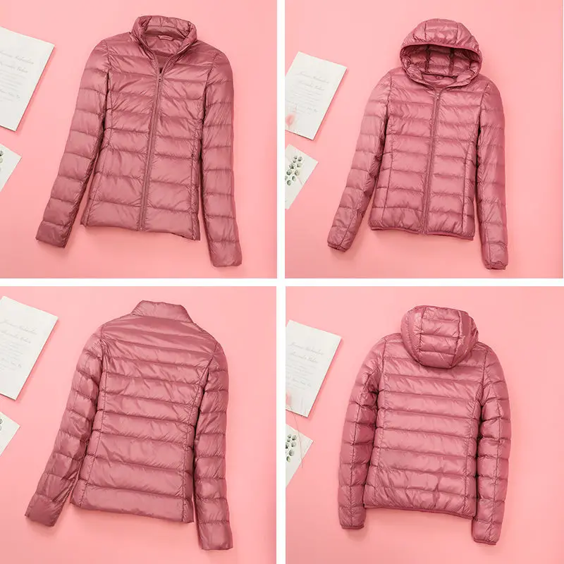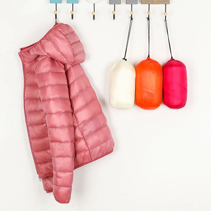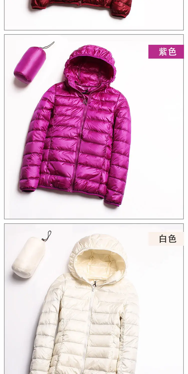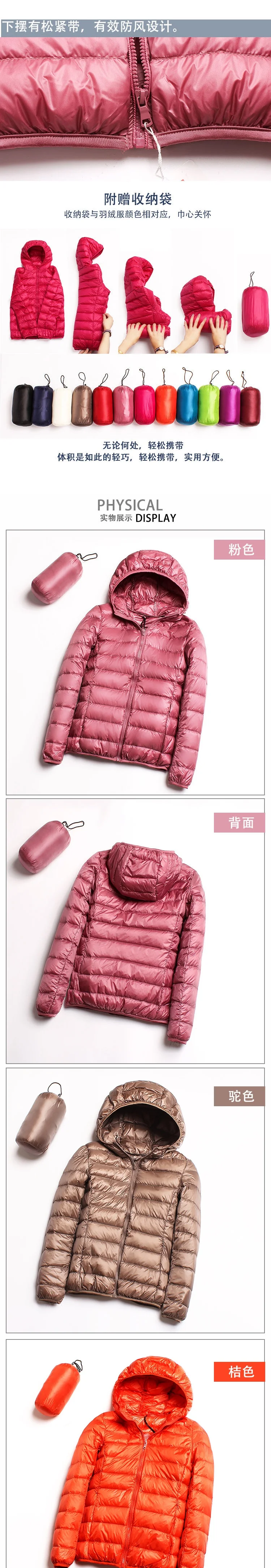 Пуховик женский с капюшоном, ультратонкий ульсветильник пуховик на 90% утином пуху, зимняя однотонная теплая куртка больших размеров для женщин