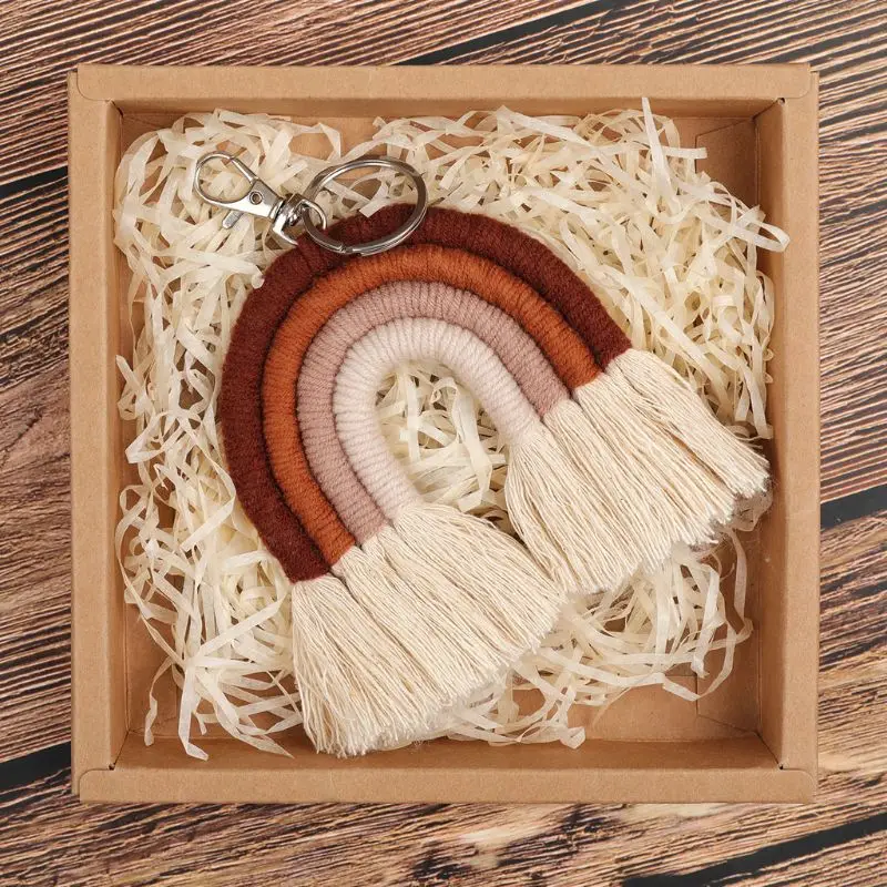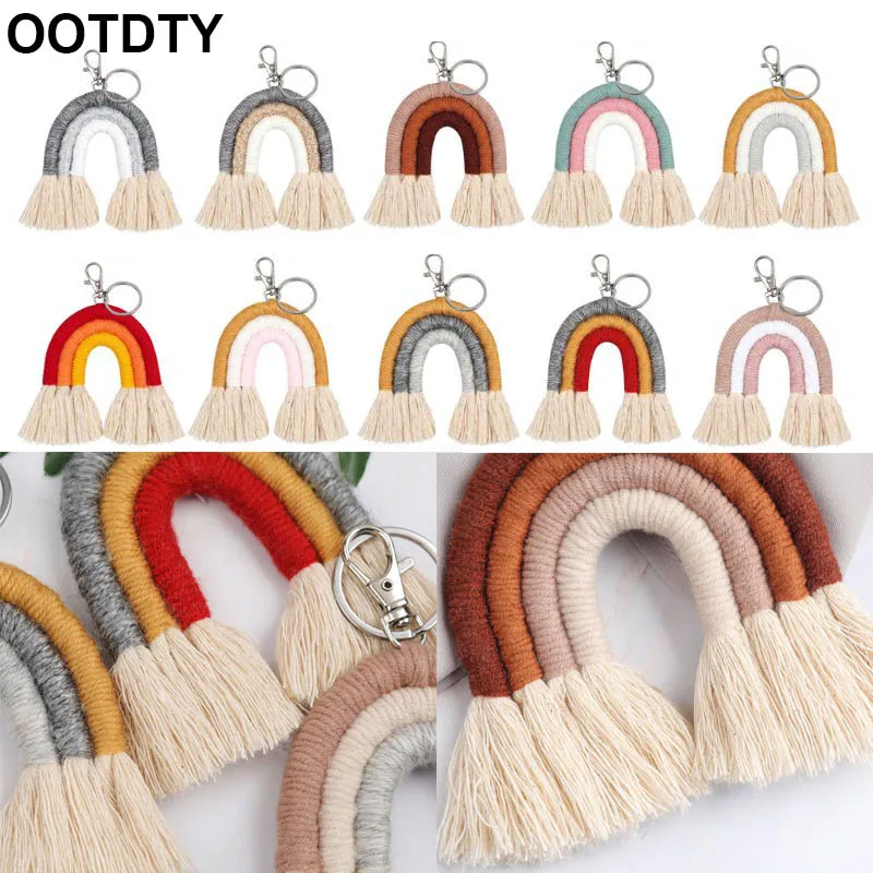 Брелок для ключей в стиле бохо Женский, Радужный держатель для ключей ручной работы в стиле макраме, подвесная бижутерия для автомобиля, Подарочная бижутерия