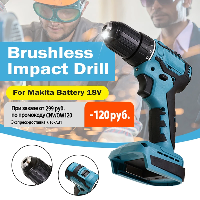 Стальная дрель перезаряжаемая литиевая электрическая дрель без батареи для батареи MakitaАдаптирован к 18v Батарея для Makita Батарея