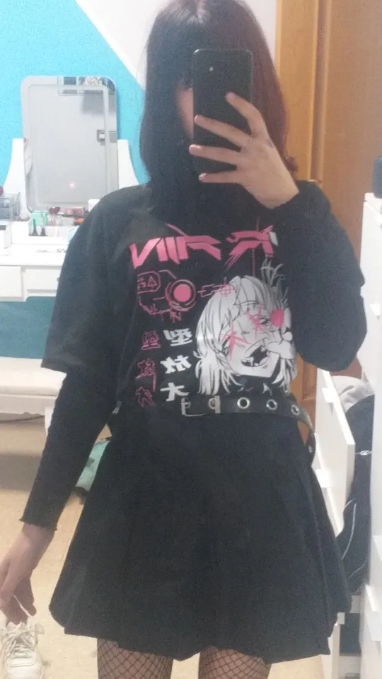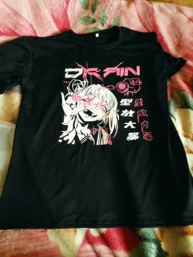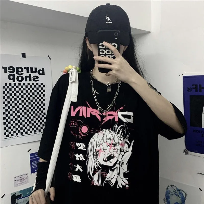 Винтажная футболка с аниме мультяшным принтом, женская одежда, Готическая футболка, уличная одежда, свободные топы с принтом, Корейская летняя черная футболка 2022