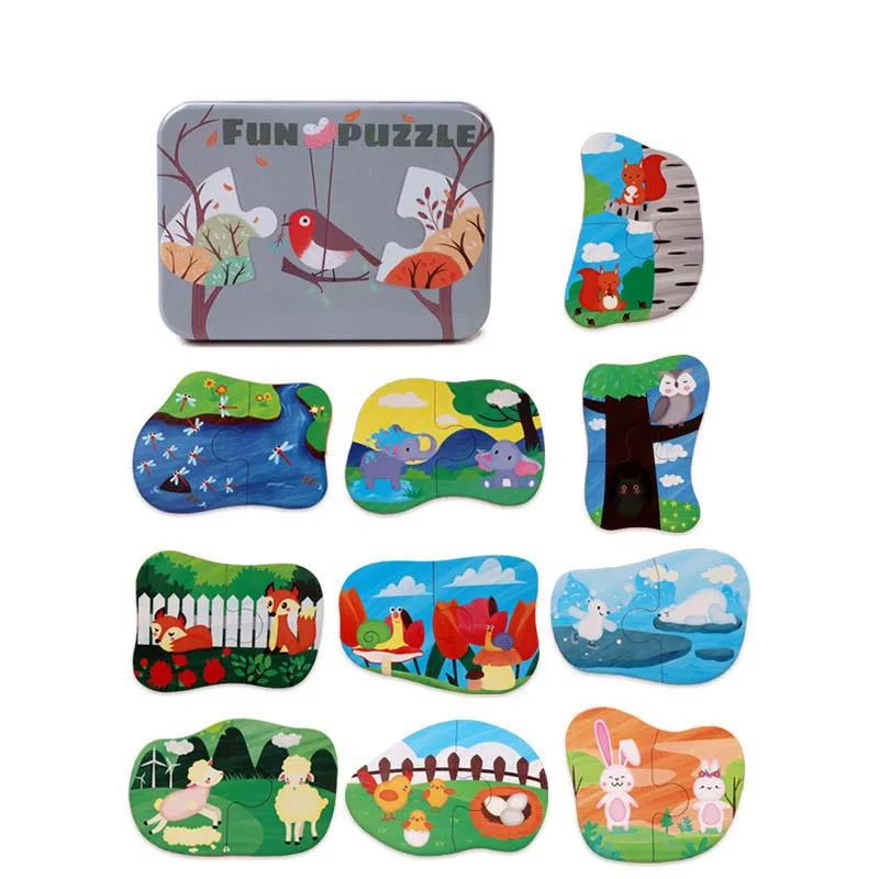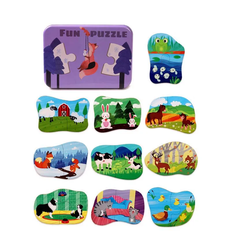 Пазл 10 в 1 с животными из мультфильмов для детей и родителей, для раннего развития, 2020, Подарочная коробка для детей
