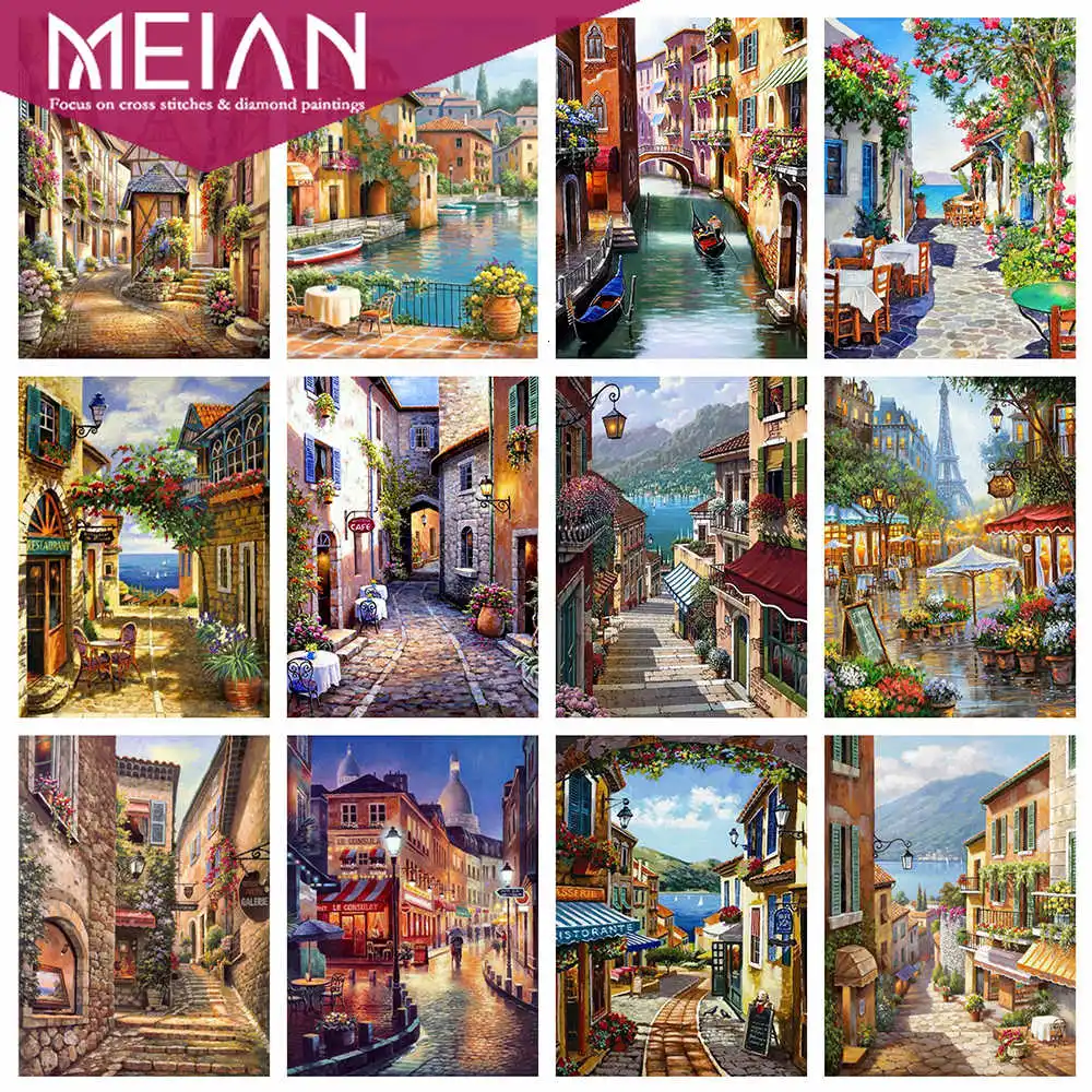 2020 алмазная живопись MEIAN City, вышивка, пейзаж, вышивка крестиком 5D, сделай сам, Круглая Мозаика, украшение для дома