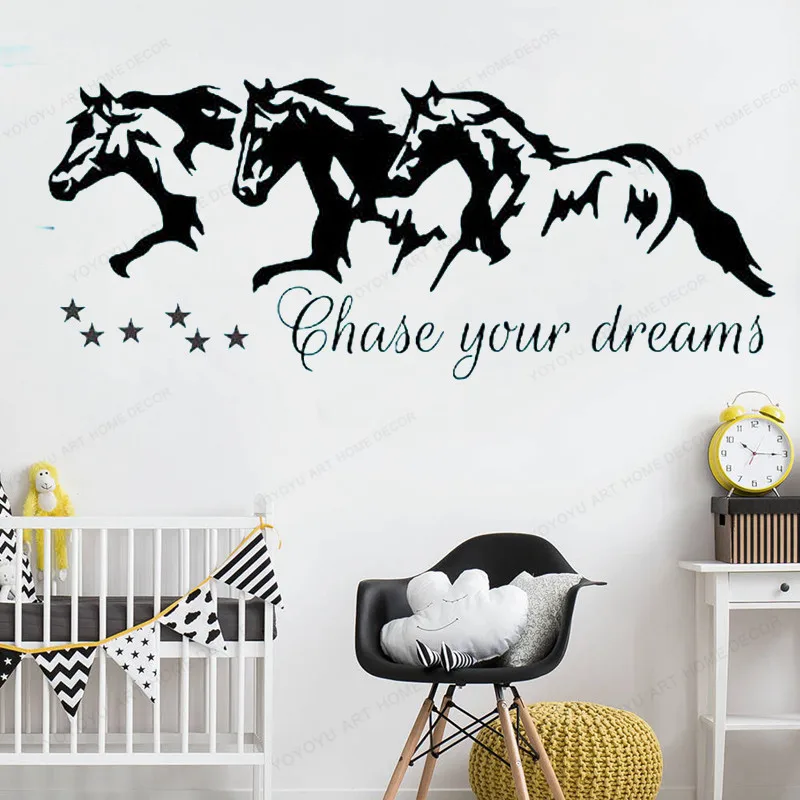 Виниловая наклейка на стену Чейз ваши мечты с лошадьми и звездами, Настенная Наклейка для детской комнаты, съемная Настенная роспись HJ849