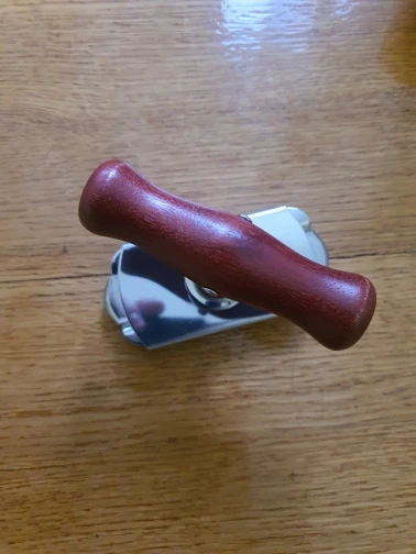 Ручка деревянная обработана так себе. Но главная проблема в том что девайс мнёт и рвёт крышку но открыванию не способствует. Речь именно о сильно закрытых банках. А те которые он открывает без повреждния я и так,рукой открою.