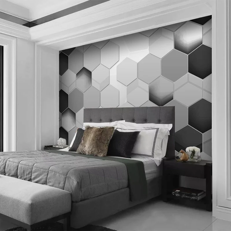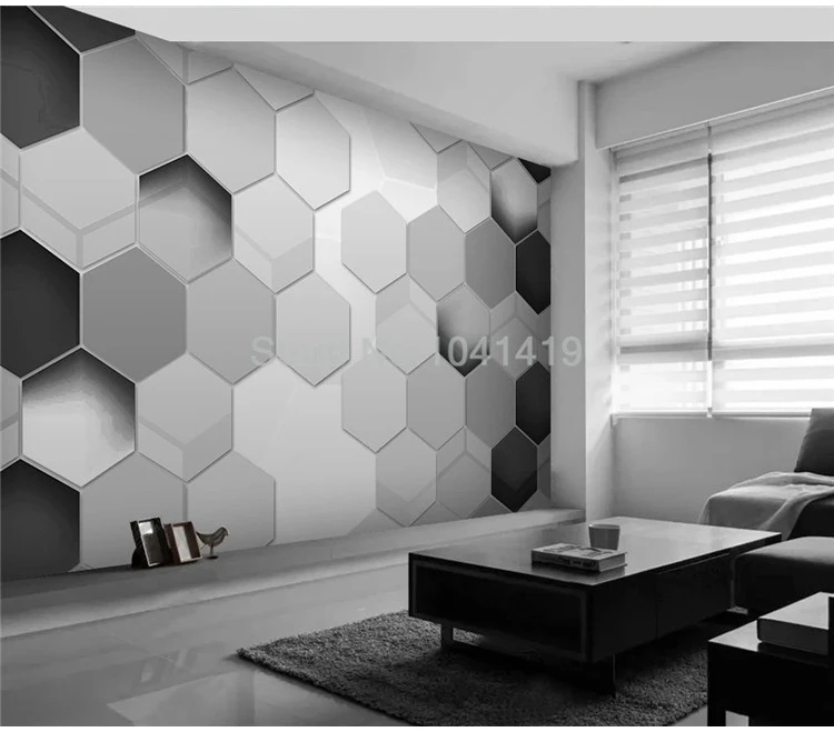 Пользовательские обои Современные Простые черно-белые 3D стерео многоугольные геометрические фото настенные фрески для гостиной ТВ дивана настенная живопись