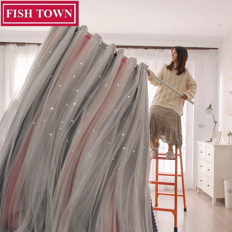 Шторы в стиле рыбный городок, романтические радужные занавески на окна для спальни и детей, шторы с вырезами и звездами, домашний декор