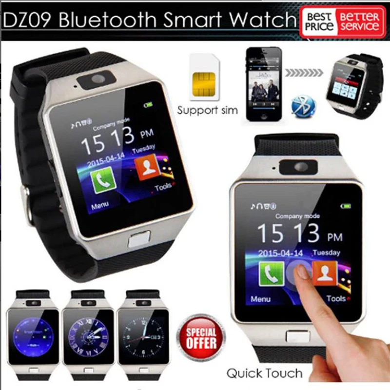 Bluetooth DZ09 мужские смарт-часы с камерой сенсорный экран наручны...