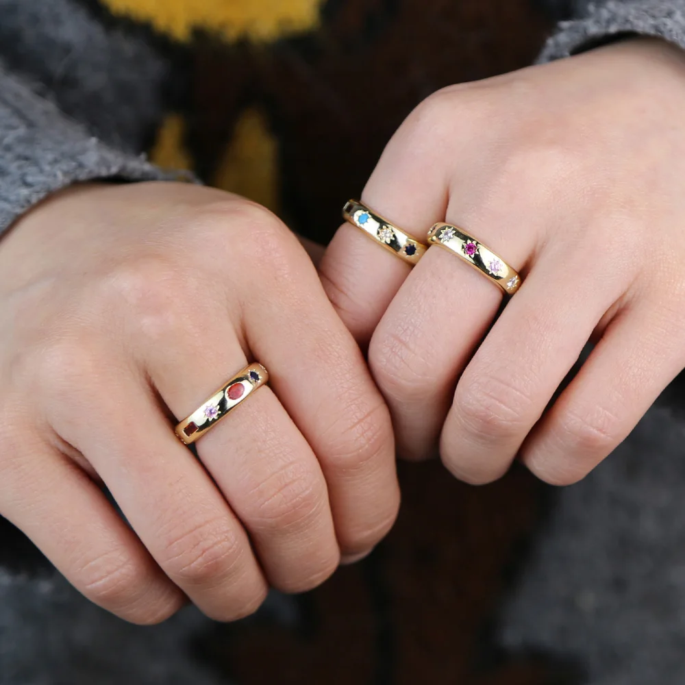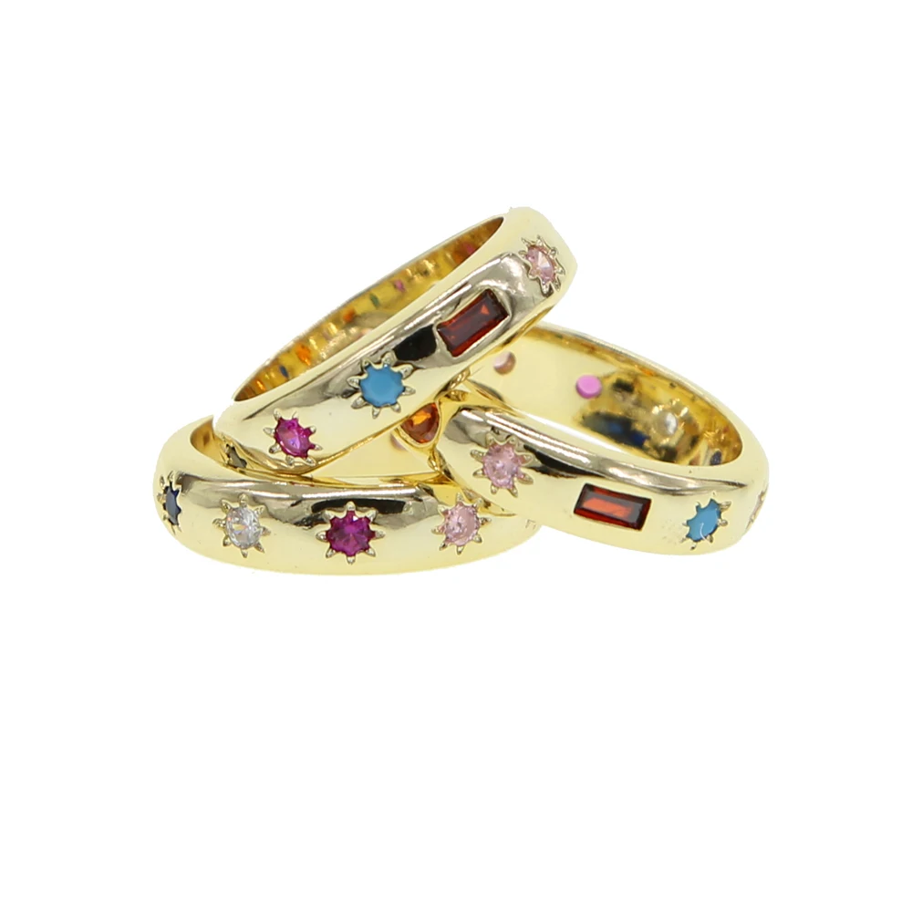 Классическое винтажное Золотое разноцветное кольцо с камнем, радуга, из камней правильной геометрической формы вставка, простой набор, кольца на палец