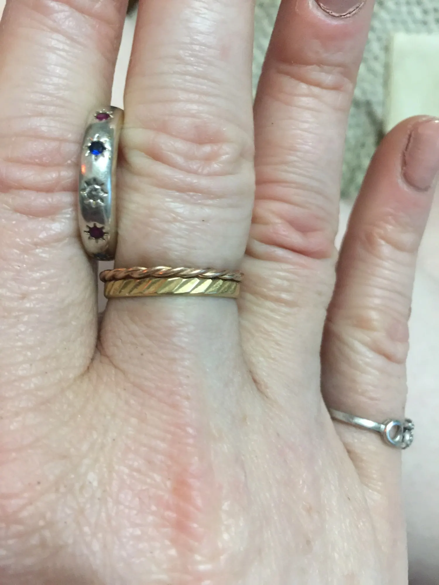 Немного мал для меня, но это только потому, что я выбрал неправильный размер. Все еще очень красивый, и отличное качество. Не делает палец зеленым.